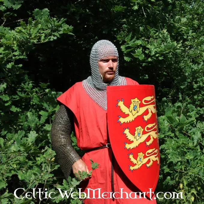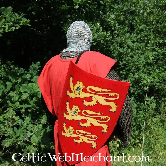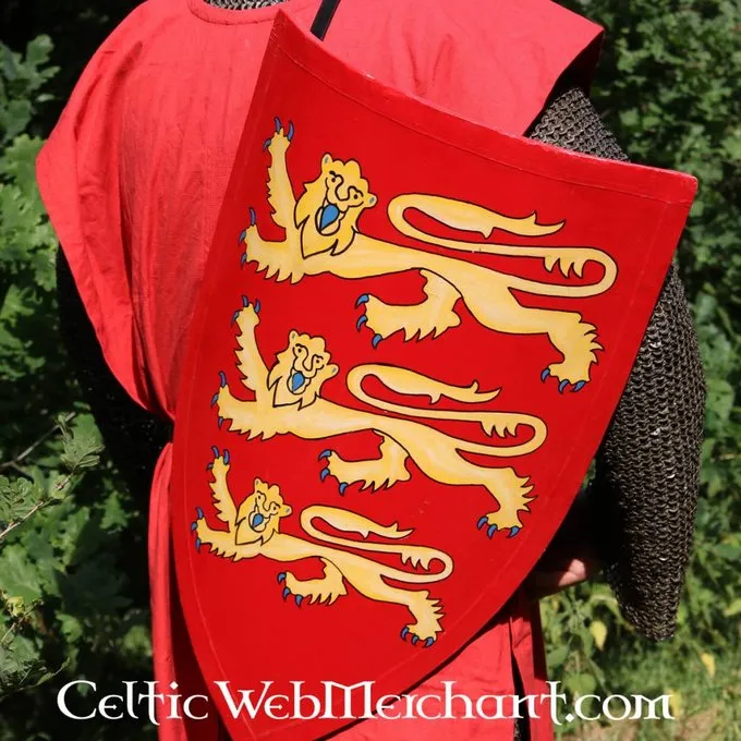Ce bouclier est peint avec l’héraldique anglais. Shields comme ils ont été utilisés par les rois anglais de l’époque de Edward Ier. Ce bouclier est entièrement fonctionnel. Il est comme les originaux en contreplaqué. Ce bouclier est de 69 x 42 cm et pèse environ 1388 grammes.