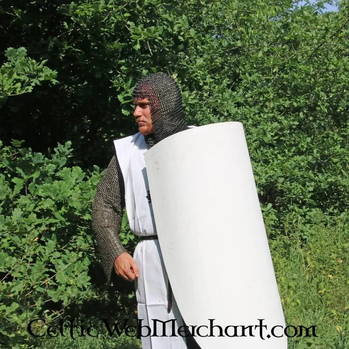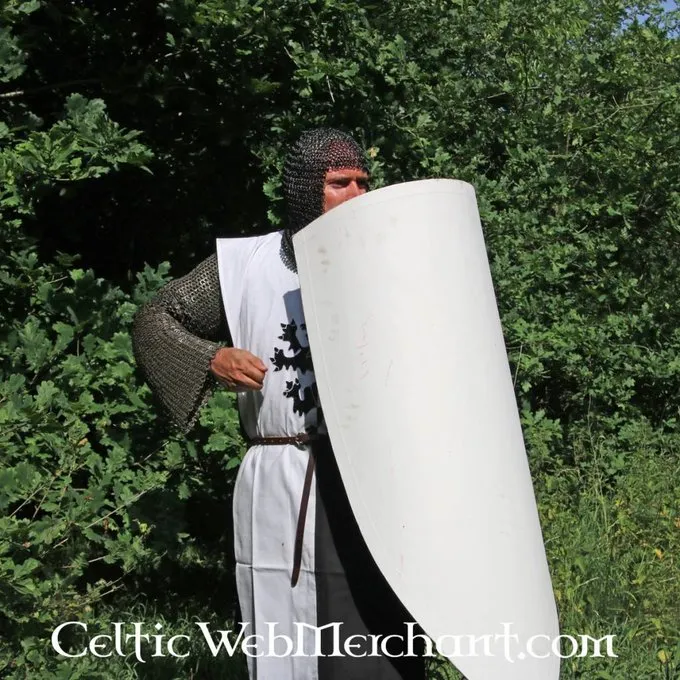 Des boucliers comme celui-ci sont développés à partir des types représentés sur la tapisserie de Bayeux. Les boucliers avaient une face supérieure plus plate. Des boucliers comme celui-ci ont été utilisés entre le 12ème et le 13ème siècle. Ils ont été utilisés partout dans le monde chrétien pendant les croisades.