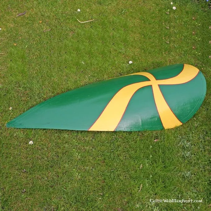 Ce Normand bouclier prêt au combat est fabriqué à partir de contreplaqué et idéal pour le combat. Il est de 134 cm de haut, max. 56 cm de large et pèse ca. 2,85 kg.