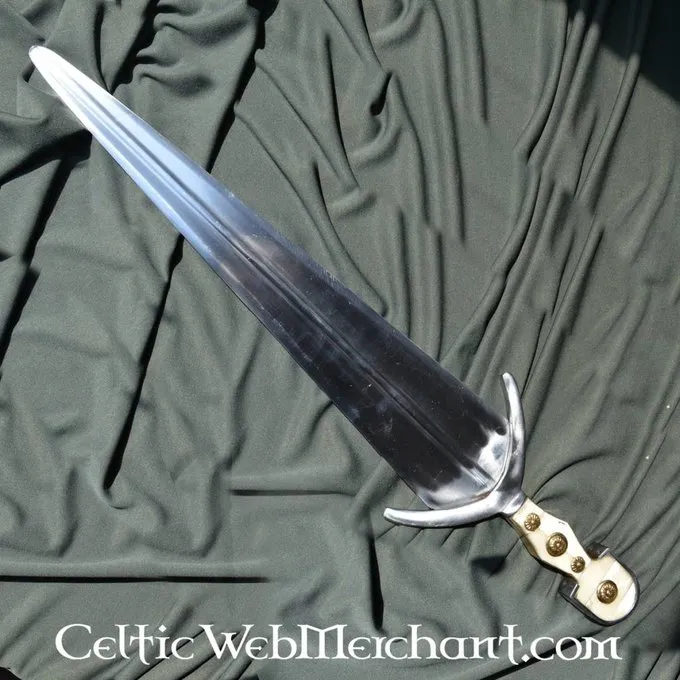 Le cinqueda était une épée de la Renaissance italienne qui a probablement été utilisé principalement pour les défilés. Cette pièce est basée sur une fin du 15ème siècle par exemple de Venise. La poignée est faite à partir d’os et décoré avec des rosettes de laiton. Il a un petit plus complète et est 63,5 cm de long. Le cinqueda est deliverd y compris fourreau de luxe.