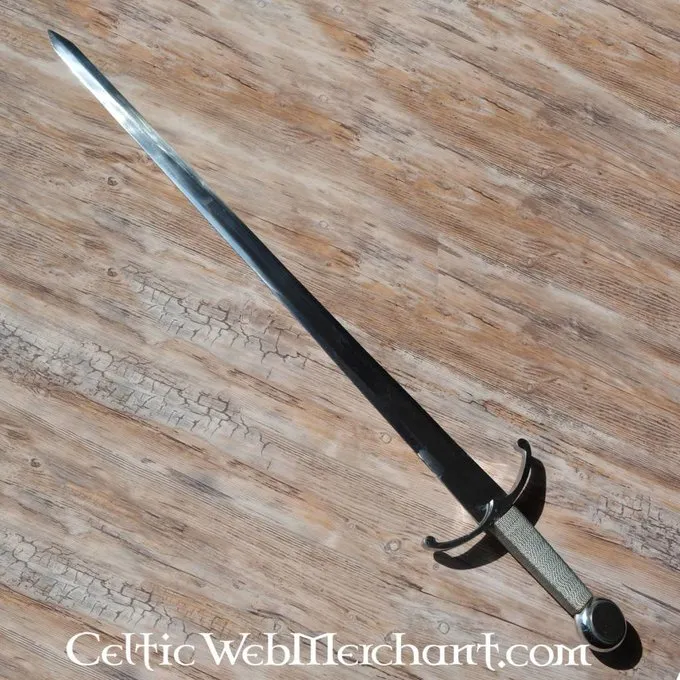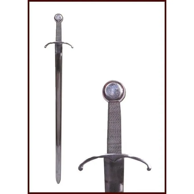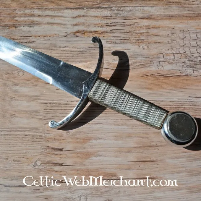 Épée médiévale à une main avec une garde croisée courbée. L’épée est forgée à partir d’une seule pièce de métal pour plus de solidité.