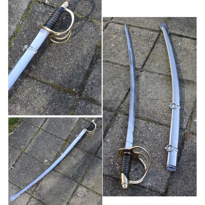 Le sabre est livré y compris un fourreau. Sa longueur si 107 cm avec une lame de 92 cm et une largeur de 3 cm. Il pèse 1050 grammes. Ce type de sabre a été développé autour de 1840 aux États-Unis pour le Dragoons, monté infanterie. Le sabre a toujours eu une poignée de laiton qui était typique de cette époque. Sabres de ce genre ont été utilisés par les Nord et le Sud pendant la guerre de Sécession.