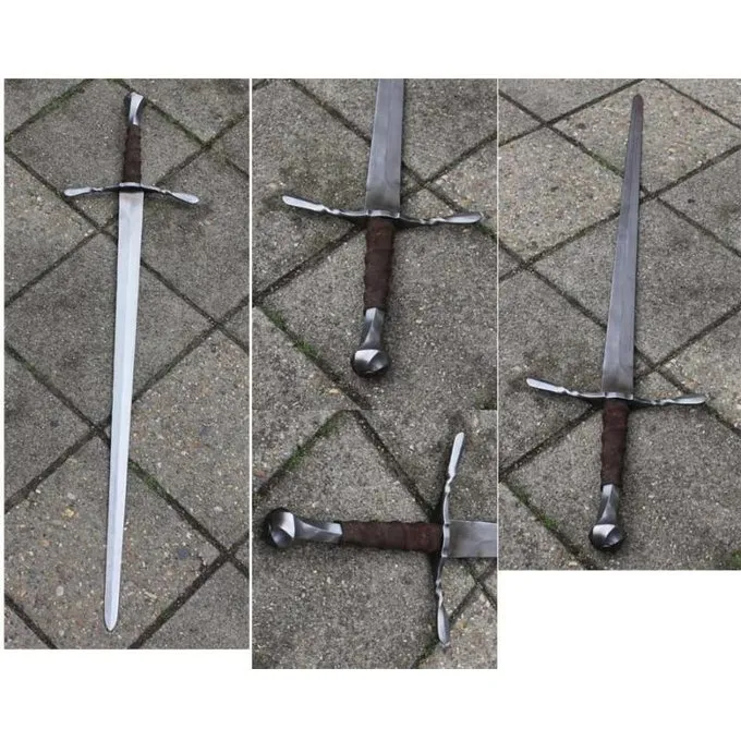 L’épée à main et demie Arjan est fabriquée d’après un original de la période de transition entre le 14ème ? 15ème siècle. L’épée a clairement son propre caractère. Il est fait d’une manière pratique mais artistique typique de cette période. La croix-garde et le pommeau en forme de bouchon de parfum sont légèrement tordus et se terminent dans la poignée.