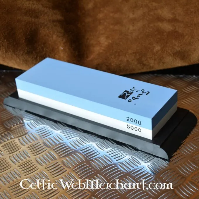 Une pierre de grise artificielle japonaise pour le broyage fin. Cette pierre aiguë a une structure ouverte et deux côtés: un grain grossier (grain 3000) et un côté grain fin (grain 1000). Cette pierre à aiguiser est faite pour meuler des couteaux de cuisine.