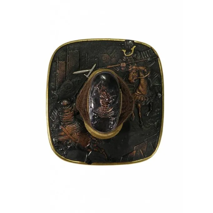 Le nom de ce wakizashi fait référence au code que chaque samouraï qui se respecte devrait suivre. Ce wakizashi entièrement à la main a une lame en acier K120C. La saya est profondément laqué et incrusté avec des représentations en laiton du sakura (fleurs). La prise en main est enroulé autour de haute qualité même (galuchat) et traditionnellement coton tissé japonais. Le tsuba est en fer bronzé. Une scène de bataille est peint en or et en argent sur la tsuba.