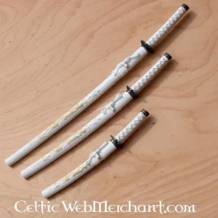 Ce katana est 100 cm de long, a une lame de 69 cm et une poignée de 25,50 cm. Il pèse 1000 grammes et dispose de son point d’équilibre à 14,60 cm en dessous du tsuba.