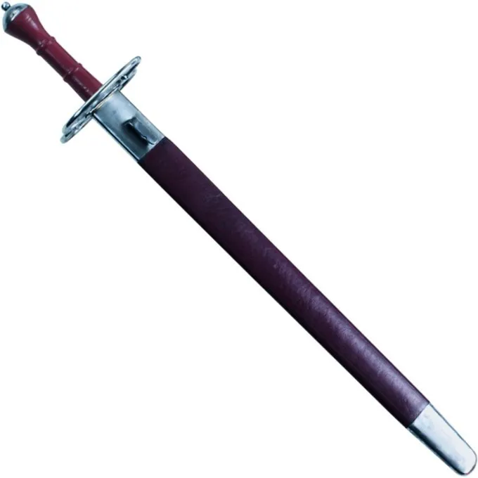 Détails: Matériel: acier au carbone, bois, cuir; Longueur de la lame: env. 61 cm; Longueur totale: env. 79 cm; Bord: semi-forte; Pointe pointue; Grip: bois; Livré avec fourreau; Construction pleine de tang; Basé sur un original historique: oui Poids du tr