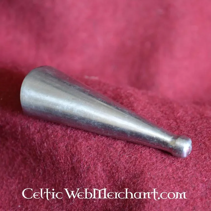 Cette chape protège et renforce le fourreau. Il est composé de l’étain et sa longueur est de 7,2 cm, une largeur de 2,3 cm et il pèse 15 grammes.
