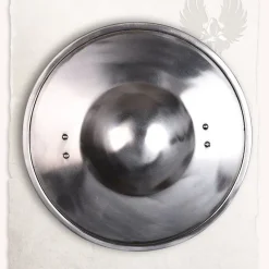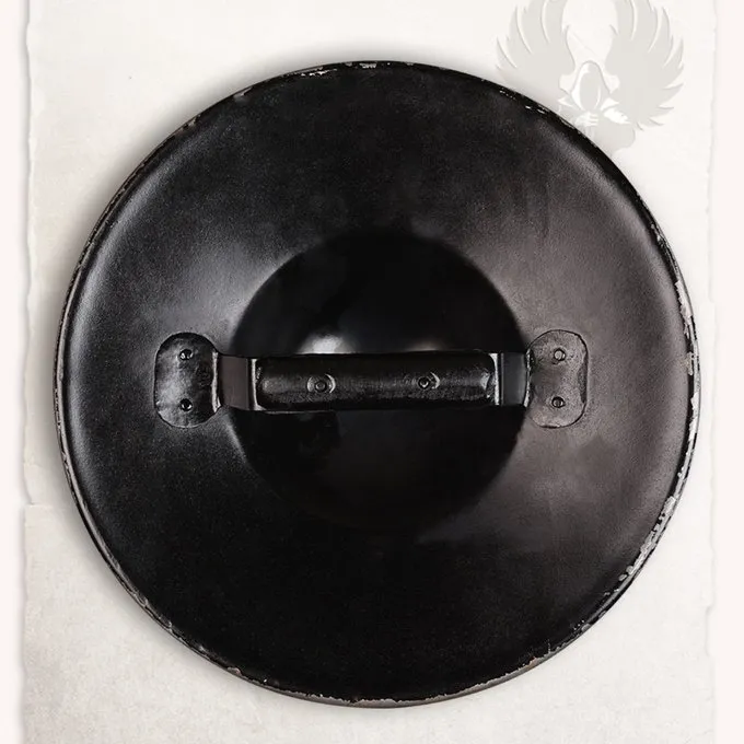 Ce bouclier prêt au combat est en acier d’épaisseur 2 mm. Il a une poignée en bois. Sont souvent représentés Buckler dans Fechtbücher comme ceux de Hans Talhoffer et Johannes Liechtenauer.