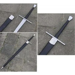 Cette épée à main et demi est basée sur les modèles antérieurs d’épée à main et demi comme le type Oakeshott XIIa. Des épées de ce type étaient déjà utilisées au début du 14ème siècle. Un original a été utilisé par les Templiers et a été trouvé dans la Tamise à Londres près de Temple Church. Cette épée prête au combat convient aux combats légers à l’épée.
