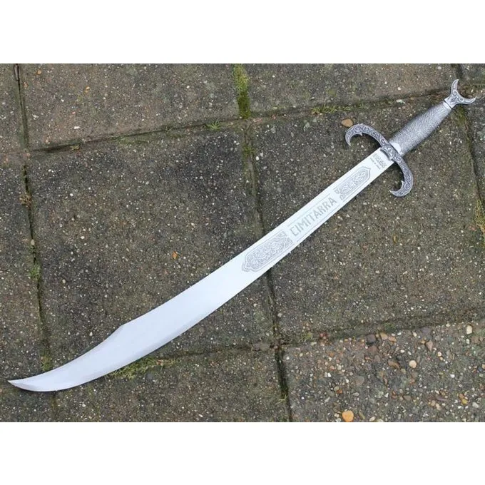 Détails de produit: Longueur: 73 cm / Longueur de lame: 59 cm / Type d’acier de la lame: EN45 acier au caros, dureté 48 HRC / Tranchant afilé: semi-tranchant / Soie: soie complète / Pommeau: vissé / Recouvrement de la poignée: bois, fil métallique / Basé