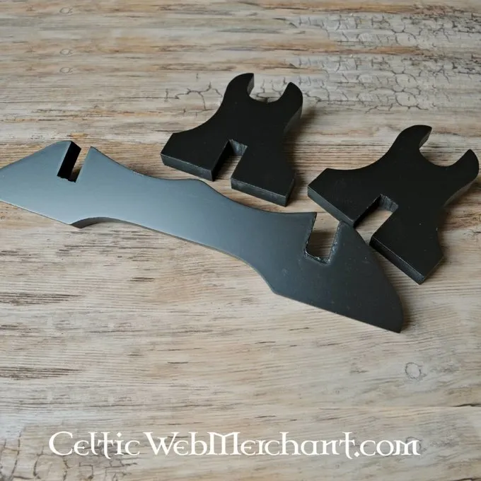 Ce support en bois est parfait pour afficher votre épée, votre épée de samouraï ou votre poignard. Il est en bois noir. Il mesure 30 cm de large et 11 cm de long.