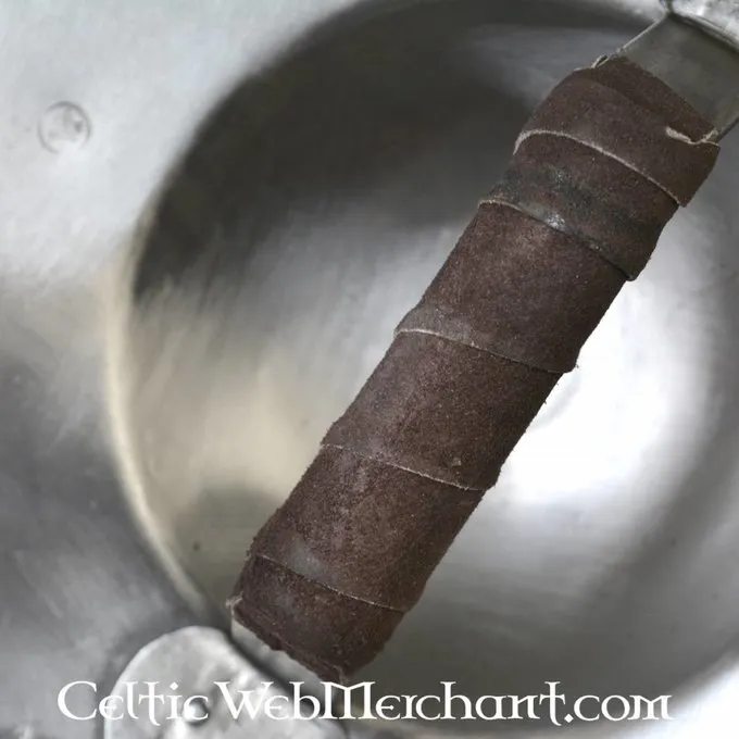 Ce bouclier rond a un revêtement en cuir pour une protection supplémentaire. Boucliers de ce genre ont été principalement utilisés à la Renaissance bien que le type était beaucoup plus gé. Cette arme est parfait combiné avec une épée de singe mains ou un arc.