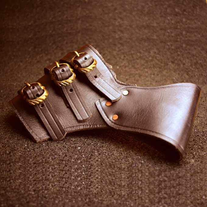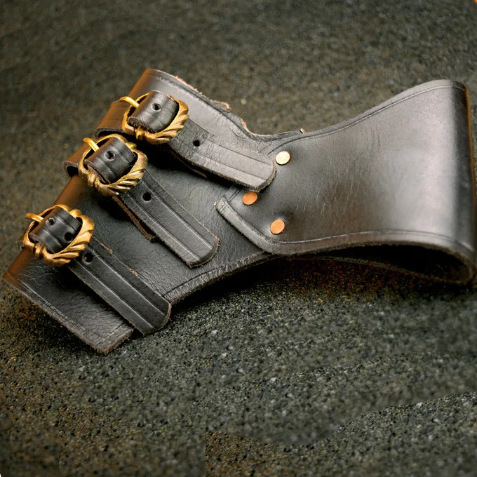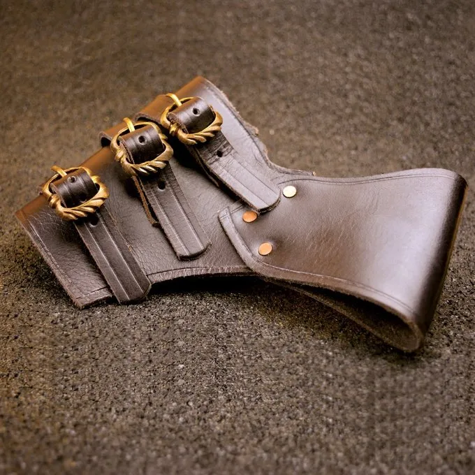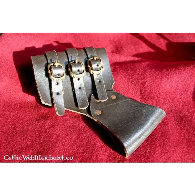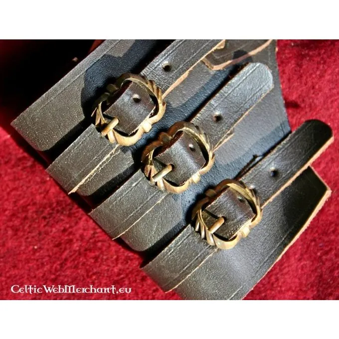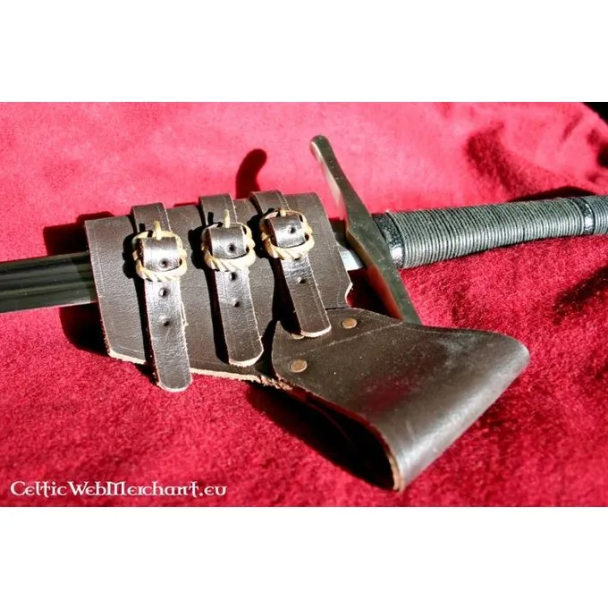 Épée grenouilles ont été utilisés pour accrocher l’épée à la ceinture. Cette grenouille peut facilement être ajustée à la taille de l’épée et se compose de 3 mm d’épaisseur de peau de vache. Les boucles sont en laiton.