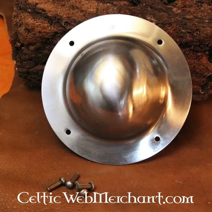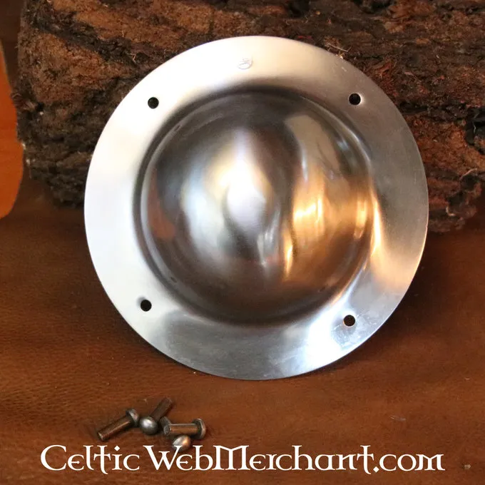Ce bossage de blindage est réalisé en acier d’épaisseur 2 mm et est livré y compris des clous de fixation au blindage. Il a un diamètre de 19 cm et un arrondissement d’une largeur de 12,5 cm et une hauteur de 6,5 cm. Il pèse environ. 500 g.