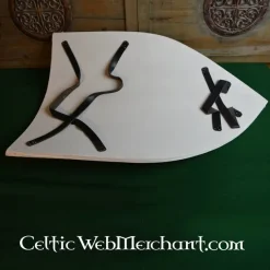 Un bouclier écossais par Windlass Steelcrafts avec une croix celtique, écossais et pour reenactment les amateurs de l’histoire écossaise. Jusqu’à la bataille de Culloden, targes écossais ont fait l’objet principal avec lequel jacobites eux-mêmes protégés dans la bataille. Après la défaite des Jacobites, les Ecossais interdit l’utilisation du targe. La targe de riches Scottishmen était richement décorée. Par exemple, la targe de Charles Edward Stuart a présenté une tête de Medusa et trophées militaires. Cette réplique Windlass Steelcrafts targe est également joliment décoré avec une croix celtique, cercles et autres motifs géométriques qui rappellent l’art des Pictes. Le bouclier est recouvert de cuir et le dos a des lanières de cuir afin que vous puissiez le tenir fermement. Le bouclier est parfait pour reconstitution historique écossais, Jacobite et reconstitution historique des batailles écossaises comme Culloden. Aussi beau pour cosplay ou un costume écossais. De plus, il est une belle pièce de décoration pour votre maison.