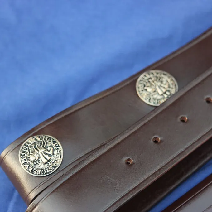 Une belle épée médiévale par Windlass Steelcraft basé sur des épées médiévales utilisées par l’Ordre des Templiers. Les Templiers était un ordre médiéval de chevaliers qui sont allés à la guerre pour la Terre Sainte. En termes de structure, leur ordre ressemblait à un ordre monastique. Plusieurs personnages historiques célèbres du Moyen Age étaient chevaliers Templiers, comme Godefroy de Bouillon et Hughes de Payns. Templiers épées ont été décorés avec les symboles religieux de l’Ordre des Templiers. La croix des Templiers est représenté sur la lame, pommeau et croix-garde de cette épée réplique. Le pommeau montre une pièce dédiée au chevalier templier Bohémond II. Les spectacles croix-garde d’un texte sur les deux côtés: le Christ et le Christ Vincit Régnat. Cela signifie: Christ conquiert et règles Christ. Cela montre la foi inébranlable des chevaliers du temple dans le Christ et la foi dans leur mission. L’épée a une plus complète en profondeur de sorte qu’il a tout à fait un poids léger. La poignée est gainée de cuir brun dans un motif de la croix. L’épée est livrée avec une belle Fourreau médiévale avec ceinturon afin que vous puissiez le porter autour de votre taille. Le fourreau est décoré avec des joints et des Templiers croix des Templiers. Une épée agréable pour sur le mur ou reconstitution historique. Lorsque bluntened, il est une excellente épée prête bataille pour le combat à l’épée et une épée de formation parfaite pour des raisons historiques européennes Arts Martiaux.