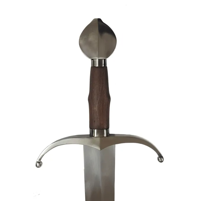 Cette épée médiévale par Windlass Steelcrafts est basée sur des épées historiques du 15ème siècle la France médiévale. Joinville était un chevalier français qui a participé à la septième croisade. Il était connu pour son courage et son dévouement au roi. L’histoire dit qu’il a utilisé une épée comme celui-ci comme une lance pour attaquer un Sarrasin en Terre Sainte. Épées comme celui-ci étaient très populaires dans la France médiévale et ont été utilisés en combinaison d’épée et le bouclier. La poignée de cette épée est faite de bois. L’épée est élégante avec un grand équilibre. Il est livrée avec un fourreau en cuir. La lame semi-forte est forgée à partir trempé 1065 acier au carbone ayant une dureté de 48-52 HRC. Une épée décorative idéale pour les amoureux de l’histoire médiévale et chevalier et médiévale et reconstitution cosplay des films médiévaux. Si vous blunten la lame, il est une parfaite épée prête au combat pour le combat à l’épée et une épée de formation pour les arts martiaux historiques européens.