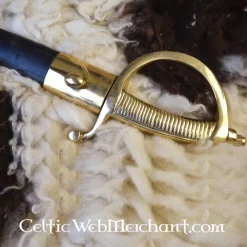 Cette épée réplique est basée sur des épées historiques de l’époque des pirates des Caraïbes. épées de pirates comme celui-ci sont utilisés dans la série des pirates et des films comme Pirates des Caraïbes Voiles et noir. Les histoires sont bien connus: célèbres pirates des Caraïbes comme Francis Drake, Anne Bonny, Charles Vane et Edward Teach ont attaqué des navires des Anglais et des gouvernements espagnols tentent de fournir leurs colonies dans les Amériques. Le sabre était avant tout l’épée de pirate. De nombreux pirates avaient un fond bleu marine et tout simplement apporté leur arme, ou ils les ont volé des navires. La lame semi-forte est forgée à partir trempé 1065 acier au carbone ayant une dureté de 48-52 HRC. La poignée est enveloppé de cuir noir et la poignée est en laiton avec une couche en laiton patiné de sorte qu’il ressemble à un vrai vieille épée. Il est livré avec notamment un fourreau de la même finition antique. Cette épée est un atout pour votre collection et merveilleux pour un costume de pirate ou cosplay. Lorsque vous blunten la lame, il est aussi parfait comme une bataille épée prête et apte pour le combat à l’épée.