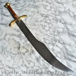 Une belle épée de pirate de Windlass Steelcrafts, sur la base des épées utilisées dans les films de pirates comme des voiles noirs et Pirates des Caraïbes. Cette épée réplique est basée sur Sabres historique du 17ème siècle. Les marins des navires marchands comme les COV également effectué de telles armes. Ces types de sont parfaits pour Sabres combat rapproché sur un bateau de pirates. Jack Rackham, Calico Jack pour ses vêtements somptueux, avait un triangle d’amour avec les femmes pirates Anne Bonnie et Mary Read. Il peut aussi avoir été le créateur du drapeau de pirate: Jolly Roger. Il est un capitaine pirate bien connu. La poignée est en laiton et le panier protège la main pendant le combat. Le sabre est livrée avec un fourreau en cuir. La lame semi-forte est forgée à partir trempé 1065 acier au carbone ayant une dureté de 48-52 HRC. Une belle épée décorative pour les fans de pirates ou une reconstitution historique de pirate ou pirate cosplay. Lorsque vous blunten la lame, vous pouvez l’utiliser pour la lutte contre l’épée et historiques d’Europe Arts Martiaux.